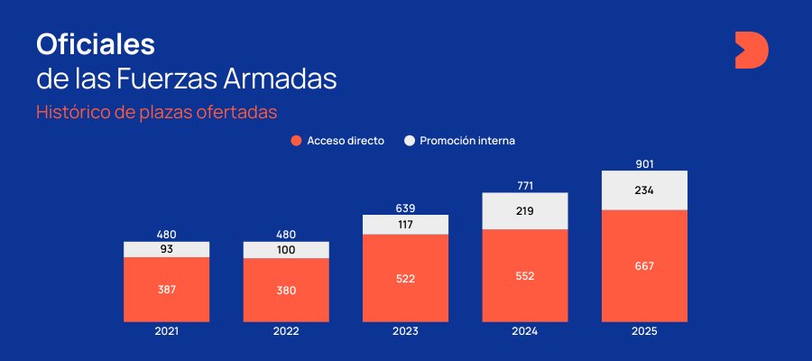 A la escala de Oficiales (Cuerpos Generales) se puede acceder por acceso directo como civil o por promoción interna como ya militar.